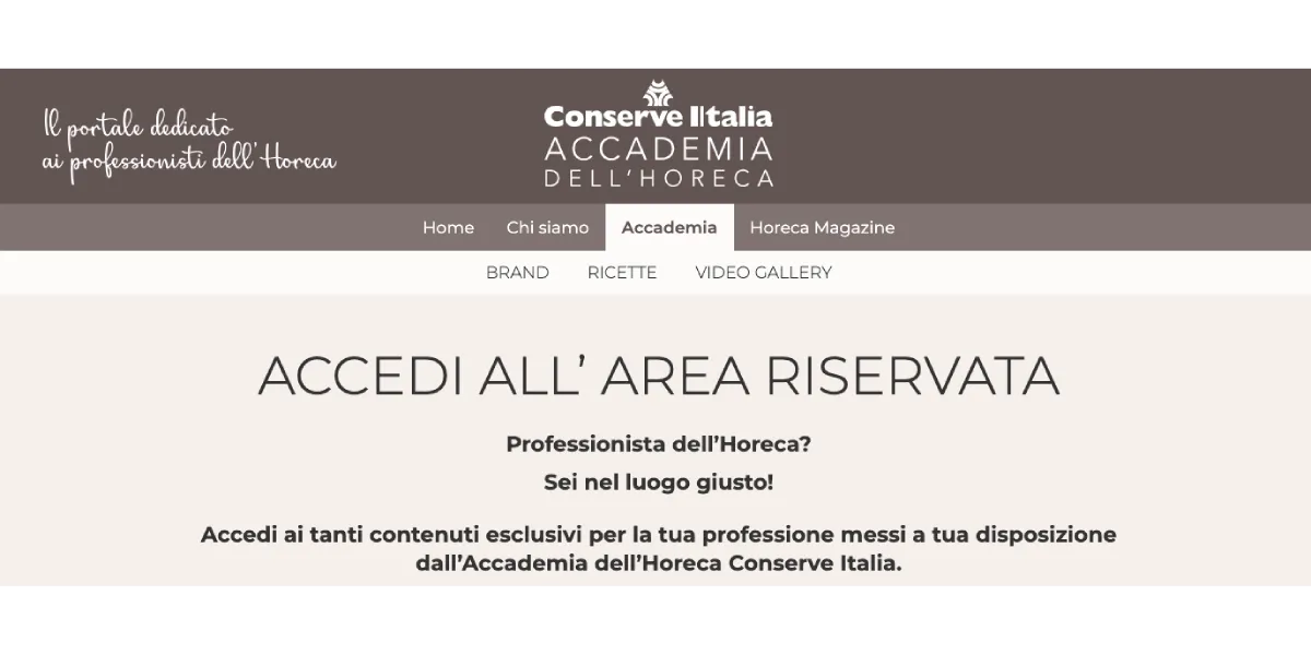 La novità più importante di questo “upgrade” riguarda l’attivazione dell’area riservata, dedicata ai fruitori dell’Accademia e all’interno della quale sono a disposizione tutte le informazioni utili su gamme e referenze food e beverage, in particolare folder, presentazioni, loghi, immagini dei prodotti, video, contenuti aziendali. Il tutto consultabile e scaricabile in completa autonomia.