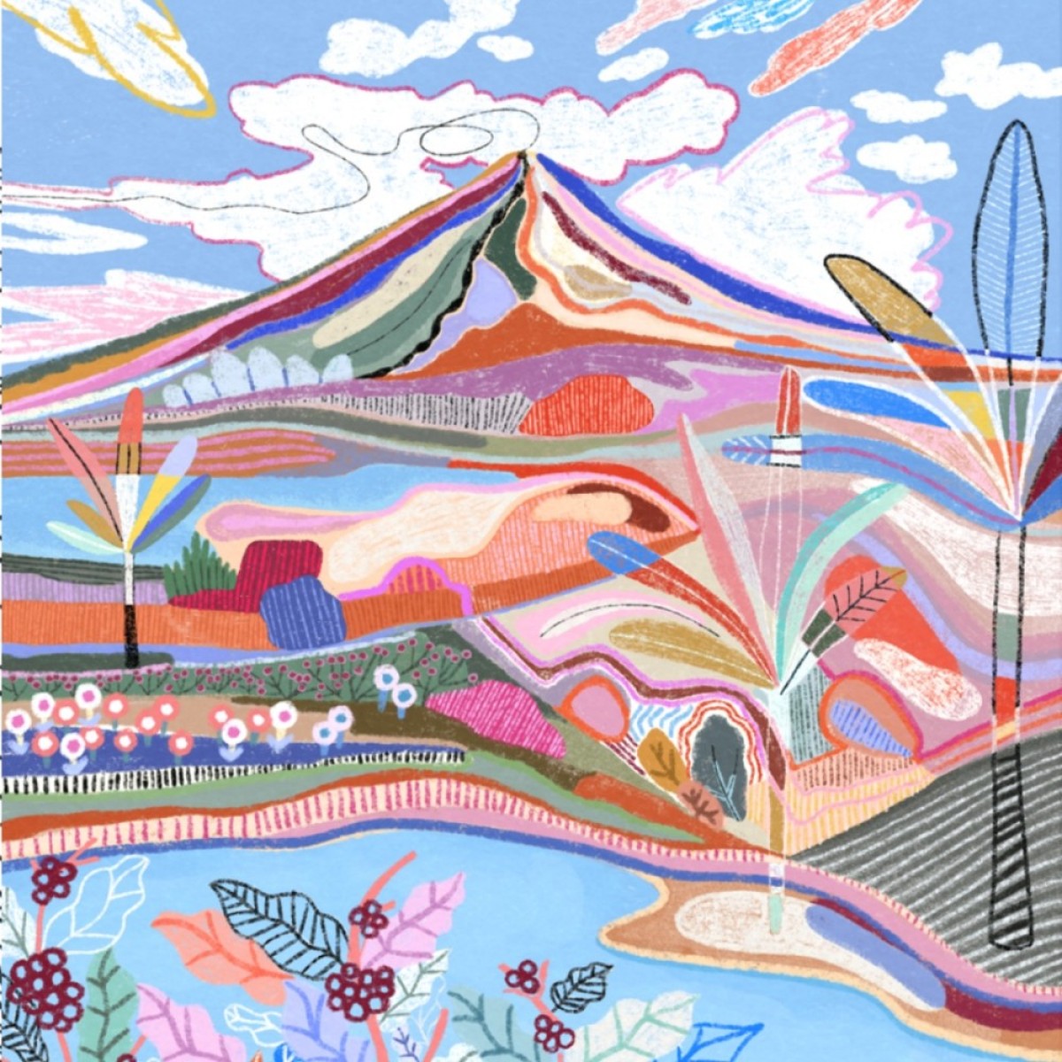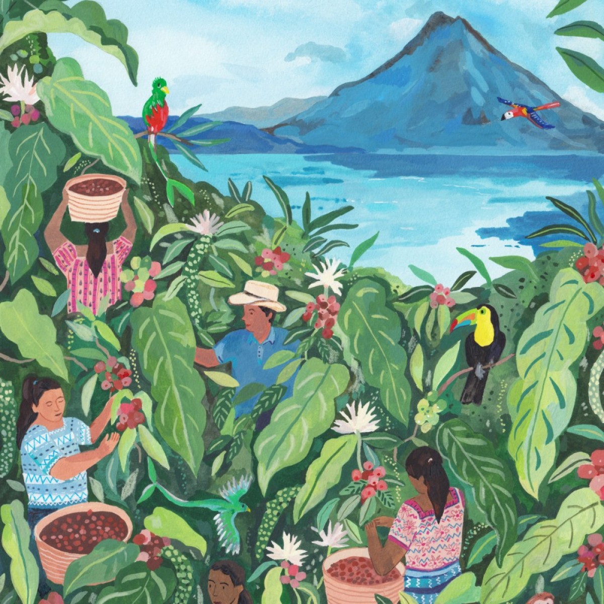 L’atmosfera magica delle terre indiane è raffigurata dall’illustratrice americana Abbey Lossing in un intreccio di motivi e figure legati da un'energia giocosa, la stessa che ritroviamo nell’opera di Liv Lee, che rende invece omaggio a El Salvador con le sue interpretazioni stravaganti di piante, fiori e frutti. I suggestivi paesaggi del Rwanda, il Paese dalle mille colline, si accendono grazie all’uso audace del colore e alle pennellate vibranti dell’illustratore Fabian Lavater, mentre con il suo iconico tratto, minimalista e colorato, l’illustratrice Miranda Sofroniou ha dato un volto al Guatemala. È infine l'artista Alexander Khabbazi a condurci alla scoperta dell’Honduras, paradiso incontaminato dell’America Centrale.