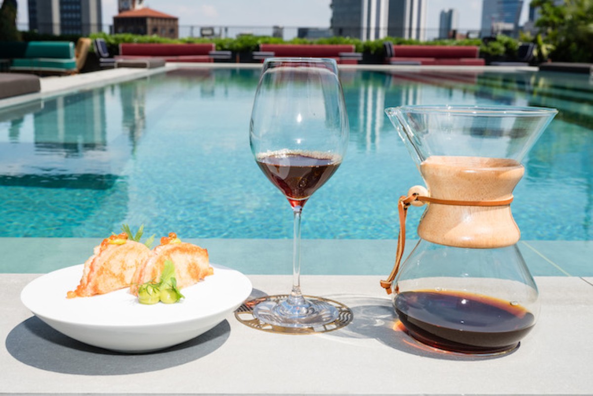 Il menu prevede Chemex e Toast di Avocado con Salmone Marinato, shiso e aceto balsamico. A seguire, Cold Brew e Carpaccio di Ricciola. Infine, a bordo piscina, verrà servito il “Claire de cafè”, drink studiato proprio per l’occasione, in abbinamento con frutta fresca. Inoltre, verrà servito un assaggio di Soraya (Russel Bourbon 10, Appleton 12, caffè espresso, acqua di passion fruit, vaniglia, soia whey) un assaggio del cocktail studiato da Abi El Attaoui, Bar Manager Ceresio 7, in collaborazione con Lavazza che sarà inserito nella cocktail list della location per l’estate.