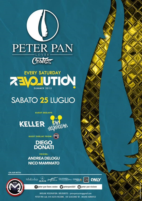 Per sabato 25 luglio al Peter Pan di Misano (RN) il party è Revolution, a cura dello staff Peter Pan Loves Costez. In console come dj guest arrivano Keller ed Ema Stokholma. La serata è in diretta...