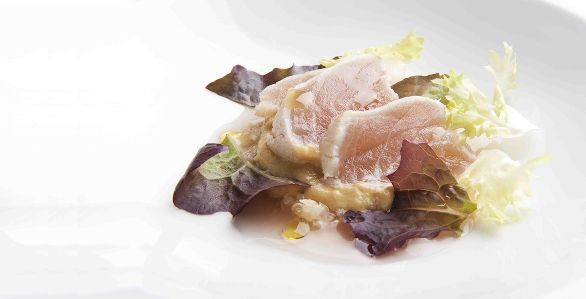 Tonno bianco tataki, quinoa agrodolce, salsa tonnata e brodo leggero di Campari Per la quinoa, cuocere per circa 20 minuti 50 gr di quinoa in un litro di acqua con 6 gr di sale, scolarla e condirla...