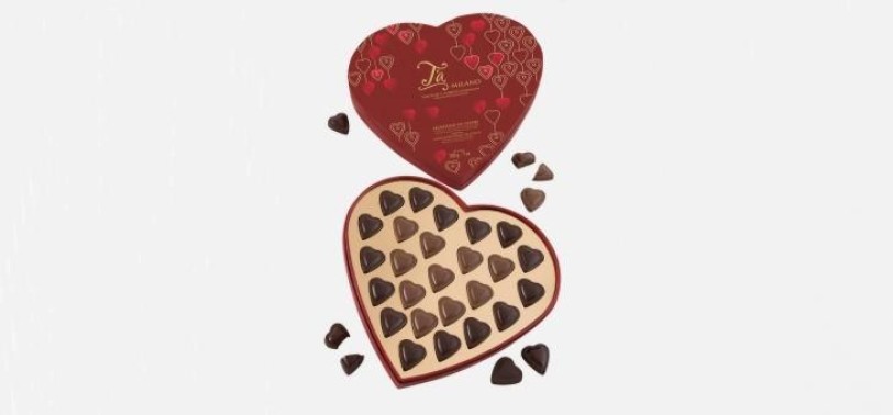 È un prezioso scrigno a forma di cuore, decorato in oro, che racchiude attimi di vera emozione: a proporlo è T’a Milano per San Valentino con la Confezione Selezione Cuori di cioccolato fondente...