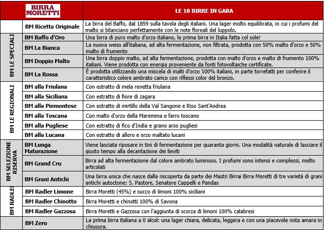 18 birre per lasciarsi ispirare - A oggi la famiglia Birra Moretti con le sue 18 referenze è la più ampia del mercato, una gamma ricca e completa che abbraccia tutti i principali stili birrari e che è in grado di soddisfare le preferenze di tutti, tanto da avere la più elevata penetrazione nel canale dei consumi a casa. Una varietà di gusti segno dell’indiscussa capacità di innovare di Birra Moretti che riesce a raggiungere milioni di consumatori in tutto il mondo. Ed è proprio a tavola che le birre della famiglia Birra Moretti danno il loro meglio. I giovani Chef non dovranno fare altro che individuare quella in grado di esaltare al meglio la propria ricetta.