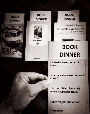 La formula dello Speed Dinner è ormai una garanzia per i single che adorano conoscere gente nuova unendo alla scoperta di belle persone il piacere della convivialità. Partendo dal presupposto che "I libri sono ponti ostinati: uniscono, creano legami" allo Speed Dinner, la cena in cui ad ogni portata gli uomini ruotano di posto, viene unito l’ingrediente libri. A dispetto di tutte le app di dating conoscere qualcuno guardandolo negli occhi e soprattutto condividendo del buon cibo sembra essere un metodo infallibile. Ma in casa Speed non ci si accontenta mai, così si è sperimentata una nuova formula: il Book Dinner.