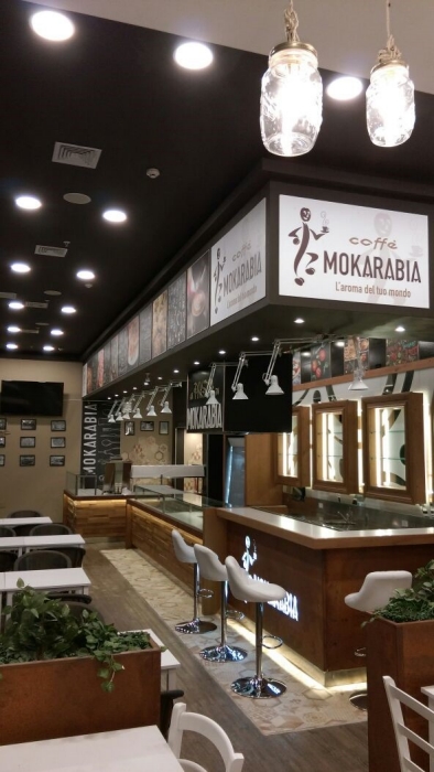 Nella lussuosa struttura si potranno gustare le nuove miscele Mokarabia, dall’aroma unico e inconfondibile, come Espresso, Dama Bianca, Caffè Shakerato, Cappuccino e Mokaccino. Un’atmosfera accogliente ed elegante caratterizza il nuovo Coffe Bar, dove i colori scelti per le pareti ricordano le tonalità del caffè. Un ambiente ricercato, dove tutto è studiato per far vivere la storia dell’importante marchio che coincide la storia della migliore tradizione italiana.