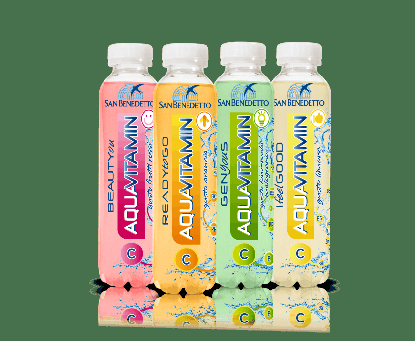 Dedicata a tutti coloro che svolgono una vita attiva, attenti al proprio benessere e con uno stile di vita giovanile e dinamico, Aquavitamin è disponibile nel formato “slim” da 0,40L in 4 gusti freschi e dissetanti, per 4 differenti funzionalità: BEAUTYou al gusto frutti rossi, un alleato per l’idratazione e la tonicità, GENyouS, al gusto kiwi/mela/melograno, per ritrovare vitalità ed energia, IfeelGOOD al gusto limone, un aiuto per mantenere in forma le difese naturali e READYtoGO al gusto arancia, una piacevole pausa rinfrescante per ritrovare lo sprint.