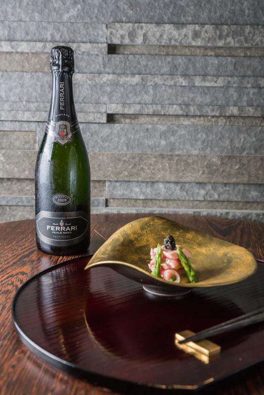 Per proiettarsi in un vero e proprio viaggio fra Italia e Giappone, Sushi B propone il menu kaiseki servito al sushi banco (130 euro) con selezione dei vini Ferrari Trentodoc. Al ristorante gourmet si trova invece la proposta del menu omakase a mano libera dello chef, sempre con i vini Ferrari Trentodoc a 110 euro.