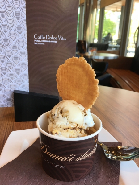 Il gelato alla Prekmurska Gibanica, che lo scorso aprile si è già aggiudicato il titolo di miglior gelato sloveno, può essere degustato al Caffè Dolce Vita, il lounge bar del Perla Casinò & Hotel, insieme a tante altre irresistibili tentazioni.