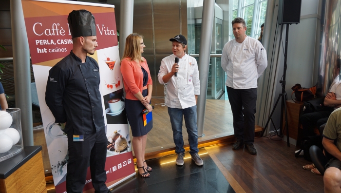Il Caffè Dolce Vita del Perla Casinò & Hotel ha ospitato ieri pomeriggio un gustoso appuntamento: il pasticcere Tine Valic ha incontrato la stampa italiana e slovena per una speciale degustazione a base di gelato alla Prekmurska Gibanica. Giornalisti e curiosi hanno potuto assaggiare l’ultima creazione del mastro gelatiere del Perla, una rivisitazione del tradizionale dolce sloveno in un gusto unico e prelibato, che rispetta la ricetta tradizionale sia in termini di materie prime che di modalità di preparazione.