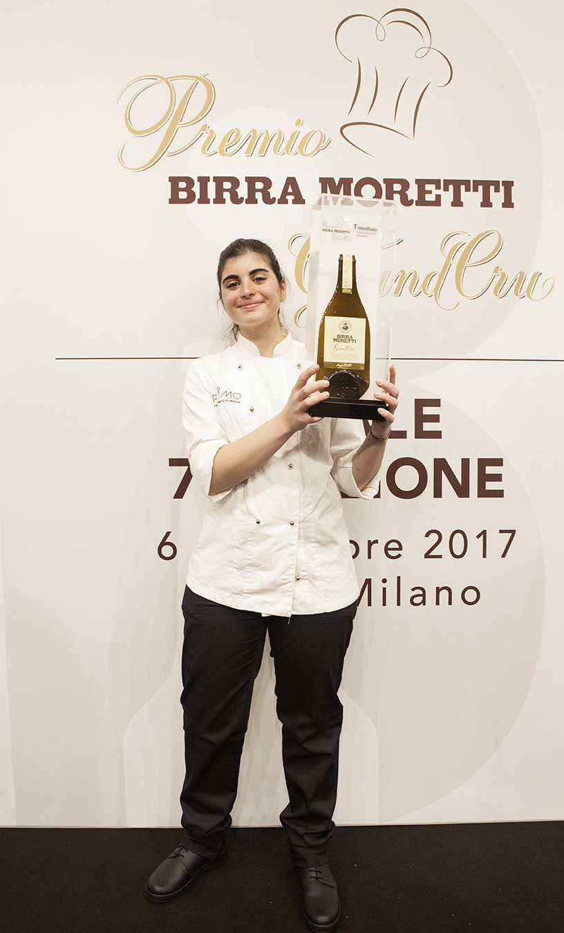 Il riconoscimento è stato assegnato ieri nel tardo pomeriggio a Milano al termine di una succulenta performance live durante la quale 10 giovani finalisti, selezionati fra 163 chef e sous-chef da tutta Italia, si sono sfidati nelle cucine del ristorante Lume di Milano, di fronte a una giuria di 14 stelle Michelin. Ecco la motivazione che ha portato Solaika Marrocco sul gradino più alto del podio, letta dallo chef Giancarlo Morelli: «Vince il Premio Birra Moretti Grand Cru chi ha dimostrato conoscenza delle tradizioni, personalità e coraggio nella scelta degli ingredienti e della ricetta, coniugando con squisita semplicità i vari elementi, credendo nella sua idea. Come ha detto: “il palato parla”».