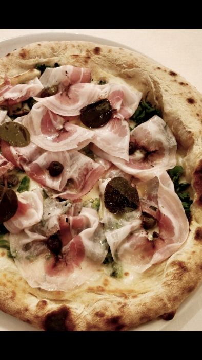 Pizza Baroletta: Mugnoli selvatici, cappero candito, foglia del cappero e baroletta - Lello Ravagnan (Grigoris)