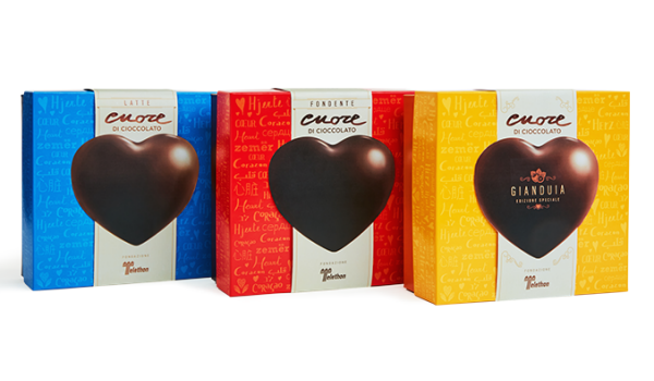 Quest’anno il Cuore gianduia è la novità che Caffarel dedica a tutti coloro che amano il prodotto icona dell’azienda, che si aggiungerà alle versioni classiche di cioccolato al latte o fondente. Tutti i Cuori avranno una nuova veste grafica, allegra e colorata, perfetta per un regalo natalizio che scaldi il cuore non solo di coloro che lo ricevono, ma anche di chi combatte contro una patologia rara per poter continuare a sperare grazie ai fondi raccolti per la ricerca. Le confezioni - azzurra per la ricetta al latte, rossa per il fondente e gialla per il gianduia - sono decorate con la scritta “cuore” in molteplici lingue, perché la speranza che Fondazione Telethon riesce a donare ogni giorno a chi soffre, sostenendo la ricerca, tocca davvero ogni angolo del globo.
