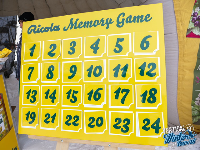 Presso l’igloo giallo Ricola, partner del Tour, sarà possibile concedersi una pausa di ristoro e assaggiare le caramelle al gusto Herb-Caramel, che uniscono la bontà e cremosità del caramello con le fresche note delle 13 erbe svizzere; saranno inoltre offerte le tisane, ideali per rigenerarsi e riscaldarsi! Nemmeno nell’igloo Ricola mancherà il divertimento: è previsto il Ricola Memory Game, un gioco basato sui gusti delle caramelle Ricola che stimola l’uso e lo sviluppo della memoria e che prevede in palio tanti simpatici gadget.