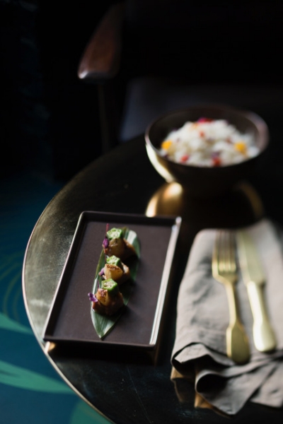 Nei dessert un’arte pasticciera sapiente rinforza la golosità di alcuni sapori asiatici, per intenderci: Pera nashi, mousse alla ricotta, crumble alla cannella, gelato al cioccolato fondente oppure Tortino di zucca, chutney di datteri, gelato alle noci Il secondo motivo che spicca nella trama di HUAN è sicuramente la mixology. Al banco la cocktail list si distingue per variazioni sui classici e signature dall’intrigante twist asiatico: dallo Spicy Margarita: tequila, nettare d’agave, Triple sec, succo fresco di lime, estratto di zenzero, bitter piccante o il Chinese stranger in the night: brandy Poli, Liquore di bamboo, menta bianca glaciale, miele allo zafferano