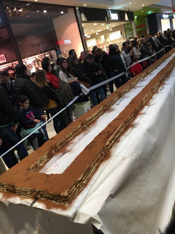Missione compiuta per il tiramisù da record realizzato ieri, domenica 11 febbraio 2018, in Friuli Venezia Giulia: con una lunghezza di 266,90 metri il dolce preparato si è aggiudicato il titolo di «tiramisù più lungo del mondo» ed è entrato ufficialmente nel Guinness dei primati. ORO CAFFE’ ha fornito per questa nuova impresa titanica 420 litri di caffè ottenuti grazie ad una gigante moka capace di preparare fino a 50 litri di caffè alla volta, che corrispondono a circa 1.000 tazzine di caffè. Tutto questo caffè si è sommato a 400 kg di mascarpone, 400 kg panna, 48 mila savoiardi, 200 chili di zucchero, 3 mila uova e 47 litri di marsala. E grazie alle sapienti mani di 30 pasticceri e volontari al lavoro per 8 ore è stato messo a segno il nuovo record del dolce più conosciuto al Mondo, presente addirittura in 23 lingue.