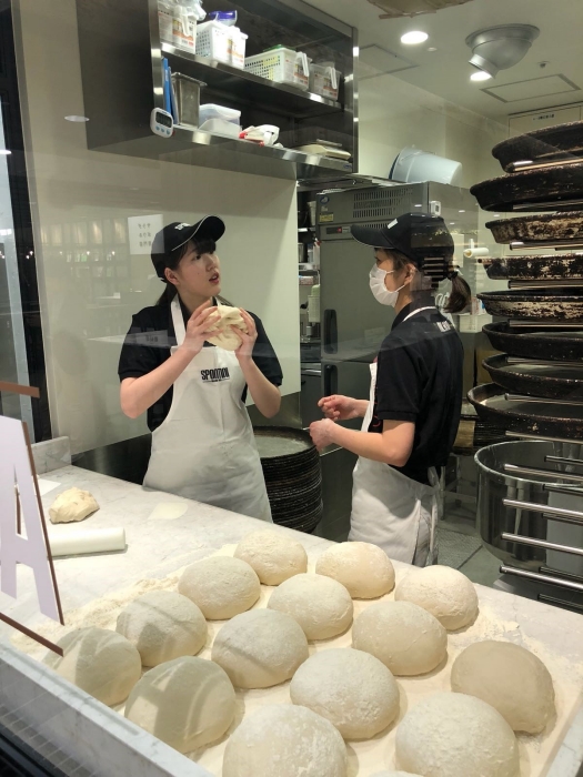 Spontini Yokohama - Con i suoi 45 metri quadrati quello di Yokohama è il più piccolo punto vendita Spontini, confermando la forza di un format capace di adattarsi a spazi e contesti diversi per rispondere al meglio alle esigenze del mercato. La pizzeria Spontini di Yokohama, in cui si fondono tratti orientali e lo stile tipicamente italiano, è situata all’interno di uno dei più prestigiosi centri commerciali giapponesi, Food&Time Isetan. Il layout prevede insegne nere e color oro, mentre il bancone con 7 posti, che si affaccia sulla cucina a vista, ricorda i tipici negozi giapponesi di sushi e ramen. Le sedute proseguono poi nella food court comune della zona Café&Deli Plaza del centro commerciale.