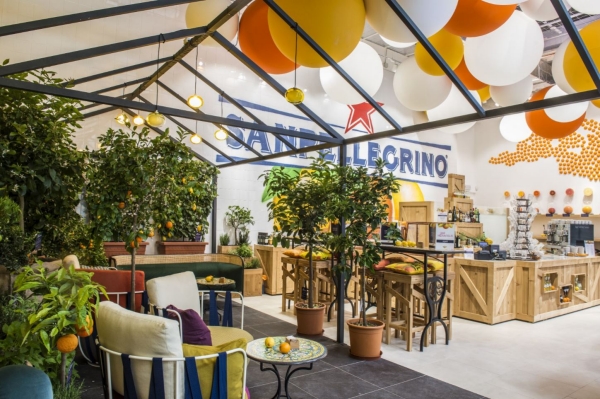 L’apertura del Bar Meraviglia nasce infatti dalla volontà del brand di lanciare un nuovo modo di intendere il consumo delle bibite, un momento di convivialità in grado anche di educare i consumatori e raccontare loro i valori dei prodotti: il progetto è infatti una vera e propria esperienza sensoriale in cui le specialità del Mediterraneo sono protagoniste, da gustare e da bere. All’interno del Bar Meraviglia tutti gli elementi sono stati studiati per portare il meglio del DNA Mediterraneo nel cuore della città, ricreando così un’oasi di relax nella frenesia della city dove il profumo degli agrumi e la freschezza delle piante in fiore hanno saputo creare un contrasto unico con l’ambiente metropolitano. A contraddistinguere il Bar Meraviglia sono stati ambienti e design unici come l’Orangerie, che hanno permesso di posizionare degli iconici tavolini di pietra lavica cotta nei forni trinacri di Caltagirone. I colori e i materiali utilizzati sono stati selezionati per riflettere a pieno il Mediterraneo.