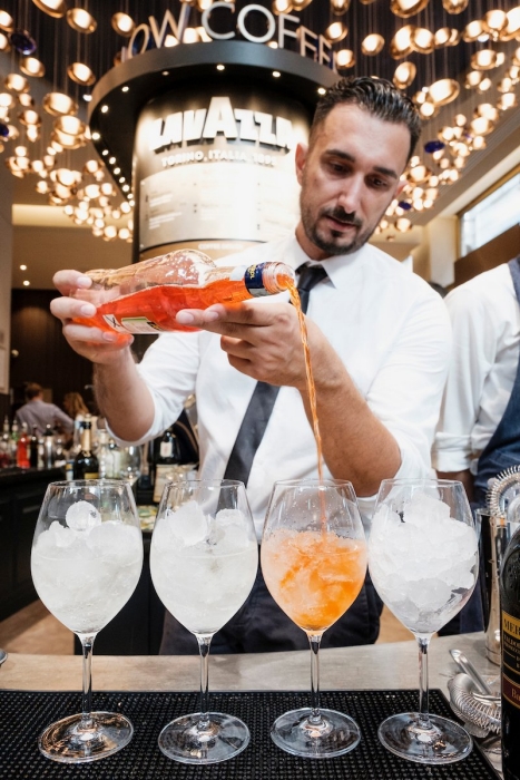 Lo spazio accogliente e contemporaneo del Flagship Store Lavazza da oggi si apre anche a tutti gli appassionati dei cocktail e ai clienti alla scoperta di nuove tendenze del food & beverage nella città in cui l’aperitivo è quasi uno stile di vita. In un’atmosfera di condivisione e aggregazione le persone possono vivere un’esperienza unica che coinvolge tutti i sensi grazie all’arte della miscelazione dei migliori bartender di Campari Academy combinata alla qualità e all’eccellenza Lavazza.