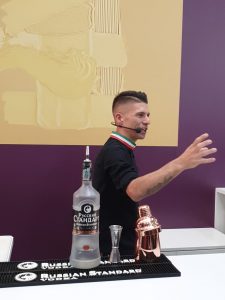 Splendida esibizione lunedì 8 aprile a Vinitaly, allo stand di Gancia, di Bruno Vanzan, il barman italiano tra i primi 10 mixologist al mondo che ha realizzato due cocktail inediti con prodotti che hanno fatto la storia dell’Italia e della Russia: il Purple Russian e l’Aperitivo di Canelli.