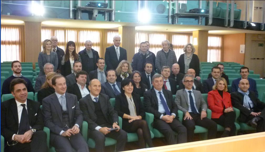 Il presidente Stefano Berni con il Direttore Federico Desimoni, i due past president Mariangela Grosoli e Sabrina Federzoni con il Consiglio e alcuni soci del nuovo Consorzio Tutela Aceto Balsamico di Modena[/caption]