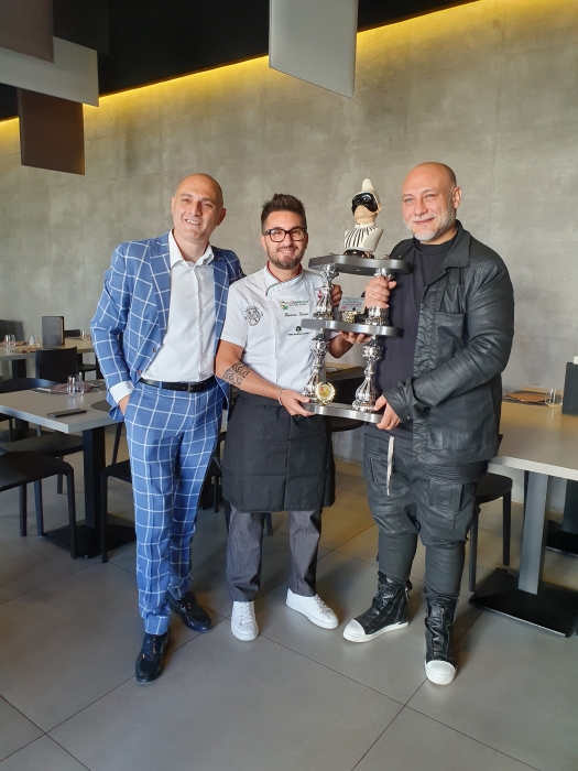 È stata una vera e propria investitura per Giacomo Garau, talento emergente del Mondo Pizza, quella che ha avuto luogo nella giornata di ieri, domenica 13 ottobre 2019, a nel suo locale “Olio & Basilico” di Calvi Risorta, in provincia di Caserta. Infatti, il pizzaiolo dell’Alto Casertano, dopo aver vinto il Trofeo Pulcinella, tra le più importanti competizioni internazionali di settore, ha ricevuto la piacevole visita di due icone del Mondo Pizza, ovvero Attilio Albachiara (Presidente dell’Associazione Mani d’Oro e Organizzatore del Trofeo Pulcinella) e Francesco Martucci, attualmente ritenuto il miglior pizzaiolo del mondo, che nel corso dell’ultima edizione del Trofeo Pulcinella, svoltasi sul Lungomare Caracciolo di Napoli il 3 e 4 settembre scorsi, ha presieduto la giuria della categoria “Pizza Contemporanea”. Albachiara e Martucci hanno consegnato nelle mani di un emozionatissimo Giacomo Garau l’ambitissima coppa riservata al Primo Classificato della categoria “Pizza Contemporanea” del Trofeo Pulcinella che, vale pena ricordarlo, ha visto competere ben 120 pizzaioli provenienti da diversi paesi del mondo.
