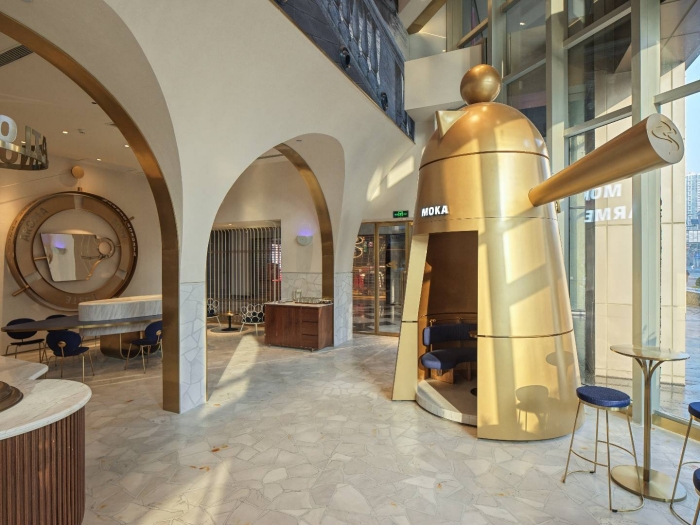 In 125 anni di attività Lavazza ha saputo mettere a frutto un patrimonio di italianità e l’impegno per la qualità e l’innovazione, affermandosi come pioniera del settore ed entrando nel cuore degli amanti del caffè in tutto il mondo. Il nuovo Flagship Store si trova a Jing’an, uno dei quartieri storici al centro della Shanghai moderna. Un connubio tra innovazione e tradizione che permetterà alla clientela di vivere in prima persona tutte le sfaccettature del mondo Lavazza all’interno di un ambiente unico e iconico in stile italiano. Il design del negozio è fatto di soffitti alti, murales artistici e finiture in marmo, per offrire al cliente l’esperienza immersiva di una caffetteria italiana. Nello store spicca un’enorme Carmencita, la storica moka Lavazza, con l’inconfondibile forma a cono. Presente nel locale anche Belle Epoque, la limited edition firmata Elektra e ispirata allo stile delle primissime macchine per espresso. L’intento è quello di restituire il fascino della storia del caffè, ma al contempo raccontare anche il ruolo unico e d’avanguardia di Lavazza nello sviluppo di questo prodotto.