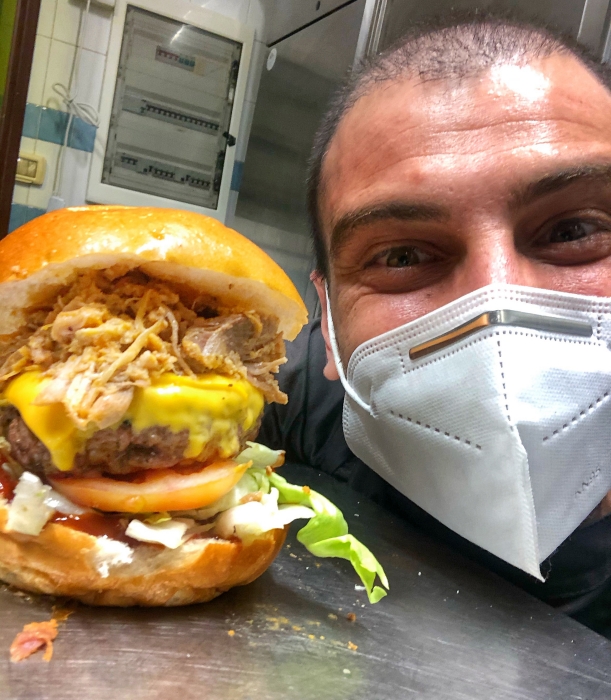 Per iniziare pepite croccanti di pulled pork “artigianale” impanate nei corn flakes e fritte, accompagnate da salsa o le frittatine ai bucatini alla Nerano e alla carbonara. Tra i burger spicca il “Rotolo” (hamburger di macina golocious 200g, crocchè al cheddar, crema di noci, provola e bacon croccante), il “Suicide” (hamburger di macina golocious 200g, pulled pork “artigianale”, cheddar, bacon, insalata, pomodoro e salsa “crispy”) e il “Carbonara” (hamburger macina golocious 200g, guanciale croccante, “carbocrema” e provola). «Panini che nascono dalla mia esperienza in California, esattamente 10 anni fa lavoravo li. Ho scoperto che il segreto sta nel bun: soffice, dolce e tiepido, al morso diventa burro».