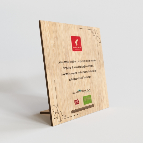 Ma l’impegno dell’azienda non finisce qui: tutti i locali che utilizzano miscele sostenibili e certificate Julius Meinl, riceveranno un certificato che attesta il loro impegno per la tutela dell’ambiente; per ognuno di loro, attraverso il Jane Goodall Institute, verrà piantato un albero per contribuire alla riforestazione della Tanzania, uno dei paesi di origine del caffè delle miscele Julius Meinl. A coloro che sceglieranno di partecipare attivamente al progetto de i Bambini delle Fate, vendendo il kit all'interno dei propri locali, sarà consegnata una speciale targa in bambù, a testimonianza del loro investimento in progetti sociali.