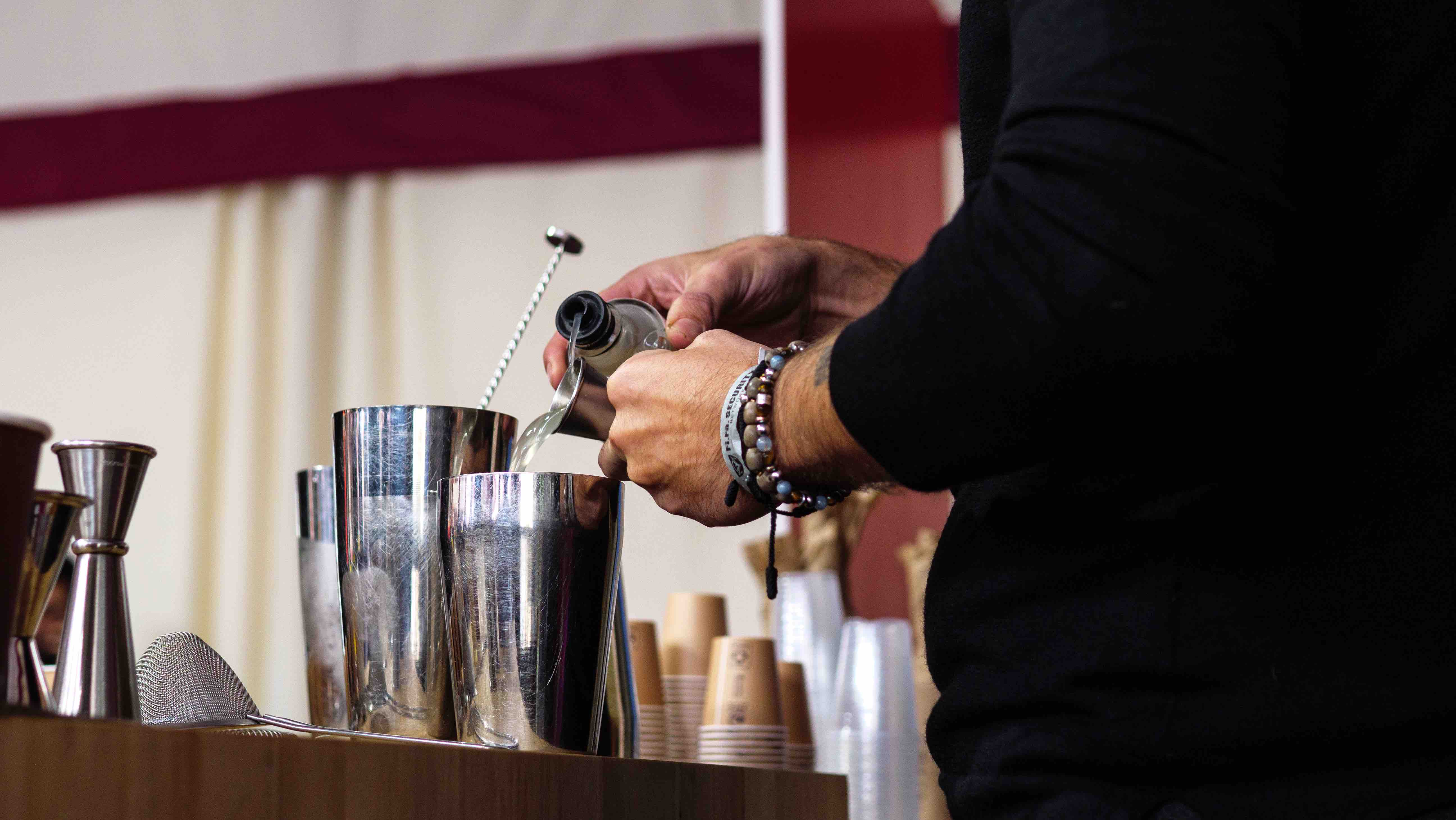 gli spazi esterni del “fuorisalone” Merano WineCitylife, con aree tasting e master experience lungo Corso Libertà.