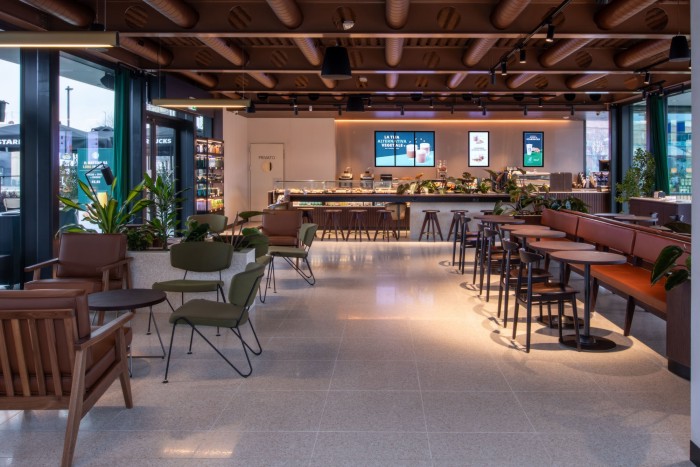 Il nuovo Drive Thru si estende su due piani: piano terra e seminterrato. Include anche un'area esterna che darà ai clienti la possibilità di ordinare la loro bevanda Starbucks preferita e i prodotti del menu, comodamente dalla loro auto. I consumatori possono anche personalizzare qualsiasi bevanda del menu, potendo scegliere tra latte di soia, latte di mandorla e latte di avena.