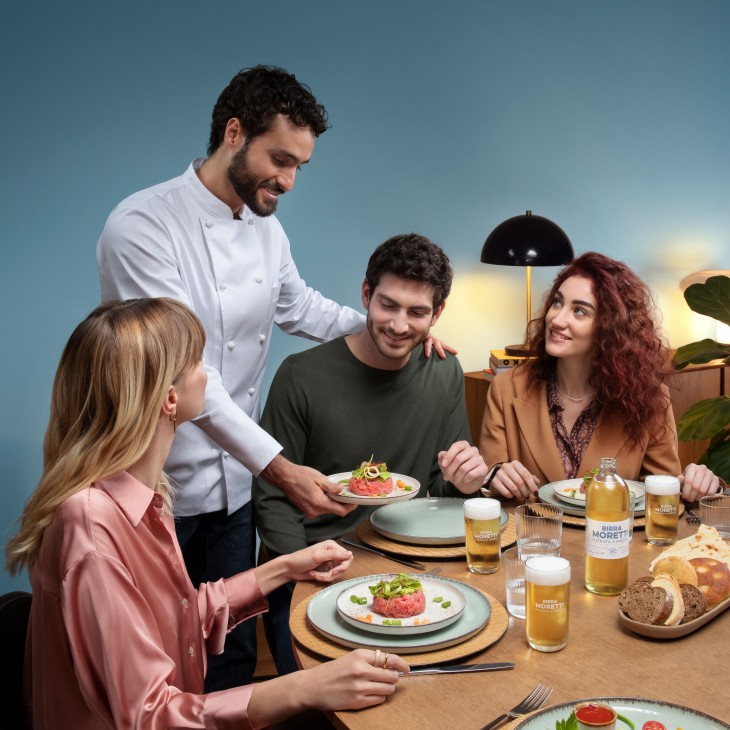 Protagonista degli abbinamenti Birra Moretti Filtrata a Freddo, che anche grazie al suo moderato grado alcolico si presta a far parte di una convivialità contemporanea e leggera. La cena sarà invece a cura di uno cuoco di Chefbooking, piattaforma nata nel 2013 dall'intuizione di un gruppo di ragazzi appassionati di cucina e nuovi media, che permette a persone di varie parti d’Italia di cercare e prenotare il servizio con chef a domicilio professionale e certificato a casa propria.