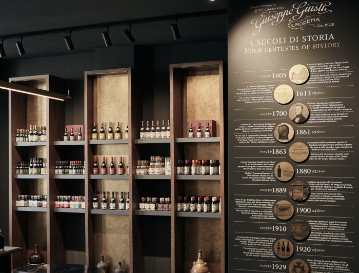 Il format scelto è quello di una ‘galleria esperienziale’ in cui scoprire la storia e la tradizione del più antico Aceto Balsamico di Modena, quello dell’Acetaia Giusti, che dal 1605 lo produce ininterrottamente da 17 generazioni. Uno spazio di 70 metri quadrati in cui il visitatore impara a conoscere i procedimenti produttivi e la storia di una delle eccellenze gastronomiche italiane più famose nel mondo, tra originali botti secolari e antichi oggetti dell’arte acetiera.