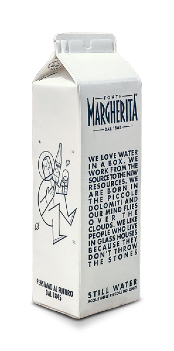 Un’acqua oligominerale pura e leggera che si può trasportare con facilità e che asseconda, soprattutto in estate, il forte desiderio di bere. Piacevole e accattivante anche il suo design, frutto della collaborazione di designer ed illustratori che provengono da mondi diversi e che hanno trasferito nel brick Fonte Margherita 1845 le proprie visioni.