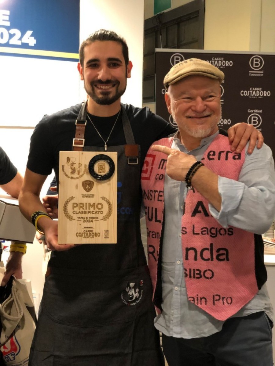 Oltre alla targa realizzata dalla cooperativa sociale Parallelo Lab, Fabio Ferrara ha ricevuto in omaggio, da parte di Costadoro, un corso di latte art tenuto dalle due campionesse mondiali Manuela Fensore e Carmen Clemente, che lo prepareranno al meglio per il suo futuro professionale.