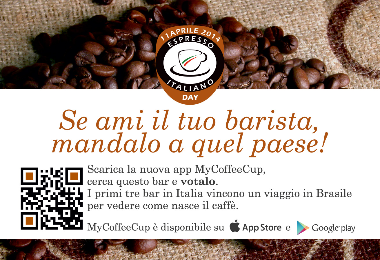 Espresso Italiano Day, la giornata nazionale del caffè che si terrà l’11 aprile, si prepara a coinvolgere 2.000 bar in tutta Italia. I clienti di questi locali potranno infatti votare il loro bar preferito tramite la nuova app MyCoffeeCup per iPhone e Android, presto disponibile sui rispettivi store. I proprietari dei tre bar più votati vinceranno un viaggio in Brasile, alla scoperta del caffè. E da qui lo slogan della iniziativa: “Se ami il tuo barista, mandalo a quel paese”.