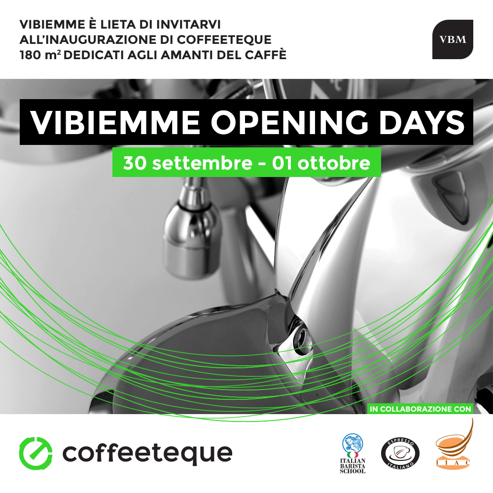A celebrare il debutto, Vibiemme Opening Days, una due giorni di inaugurazione, a ingresso libero e gratuito. Martedì 30 settembre si entra quindi subito nel vivo con una serie di interessanti iniziative. Dalle ore 14 lo spazio polifunzionale di Vibiemme sarà animato da una tappa della gara Best Coffee Tasters, il concorso che premia il miglior assaggiatore di caffè espresso, a iniziativa dell'Istituto Internazionale Assaggiatori Caffè (IIAC) e dell'Istituto Nazionale Espresso Italiano (INEI). La competizione tocca diverse città italiane ed estere ed è aperta a chiunque voglia cimentarsi nell’assaggio del caffè e nella sua valutazione sensoriale. In sintesi, i concorrenti in gara assaggiano quattro caffè alla cieca e sono chiamati a compilare una scheda di assaggio. Successivamente, un programma di statistica per l’analisi sensoriale chiamato Big Sensory Soft, valuta le singole performance e fa confluire i risultati in una classifica generale, aggiornata dopo ogni tappa (per iscrizioni: info@coffeeteque.it). Dalle 16:30 alle 18, a gara conclusa, verrà offerto al pubblico lo show dei professionisti dell'Italian Barista School (IBS), una scuola dedicata alla caffetteria che reinterpreta il caffè italiano attraverso nuovi percorsi di gusto. I baristi e trainer IBS, intratterranno il pubblico preparando e raccontando speciali realizzazioni di bevande e mixology a base di caffè espresso, offerte poi in degustazione. A seguire, la premiazione del migliore tra gli assaggiatori della competizione Best Coffee Taster, al quale spetterà una macchina per espresso professionale ad uso domestico, la Vibiemme Domobar Junior HX e, dalle 18.30, il party inaugurale dello spazio Coffeeteque in compagnia di Vibiemme e dei suoi ospiti.