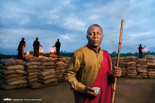 I Difensori della Terra sono immortalati in 12 scatti che il fotografo americano Steve McCurry ha realizzato durante un viaggio nel continente africano alla scoperta di storie di ordinario eroismo, aggiungendo poesia ed emozione alla rappresentazione della realtà. Un’esperienza che si conclude simbolicamente in Tanzania, nella scuola di Padre Peter Kilasara, dove vengono formati gli Earth Defenders di domani. «Sono orgoglioso - commenta Steve McCurry - di essere stato scelto da Lavazza e da Slow Food per realizzare il Calendario 2015. È stato un viaggio incredibile: ho imparato molto e ho conosciuto persone straordinarie a cui ora penso come amici. Abbiamo voluto rappresentare la dedizione di queste persone a difesa delle proprie comunità del cibo. Sarebbe un peccato lasciare scomparire queste tradizioni uniche. Proprio l’idea di proteggerle è l’ispirazione di questo calendario dedicato agli Earth Defenders e al continente africano».