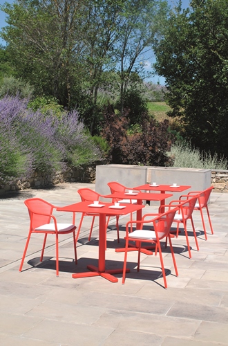 Forme leggere, classiche ed avvolgenti caratterizzano invece la collezione Darwin, frutto della collaborazione con lo studio di design Lucidi/Pevere. In elementi tubolari d'acciaio e lamiera d'acciaio stirata, questa gamma è composta da sedia, poltrona, tavolo, sgabello e tavolo alto nei colori bianco, ferro antico, nero, marrone d'India e rosso.