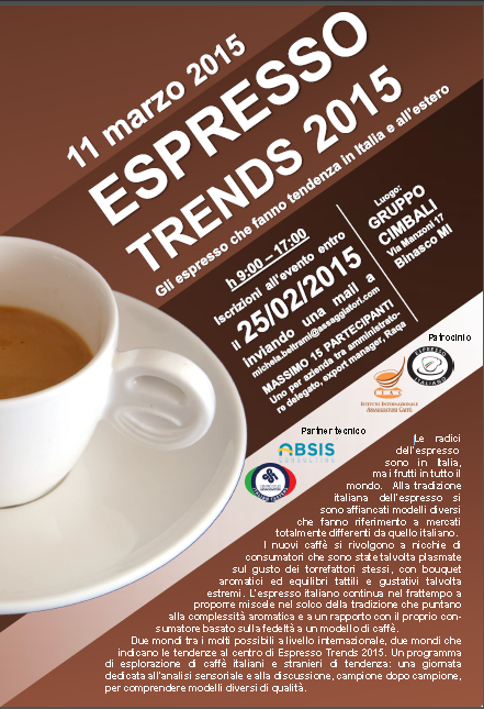 Due mondi differenti, dunque, che saranno esaminati e messi a confronto proprio durante Espresso Trends 2015. L’evento, patrocinato dall’Istituto Nazionale Espresso Italiano (Inei) e dall’Istituto Internazionale Assaggiatori Caffè (Iiac) e con la partnership tecnica di Absis Consulting e del Centro Studi Assaggiatori, sarà aperto a un massimo di 15 partecipanti tra amministratori delegati, export manager e Raqa di Inei.