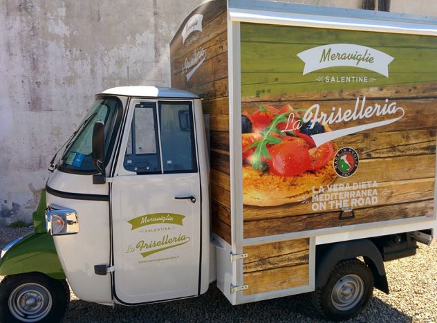 La Friselleria Meraviglie Salentine è arrivata a Milano e dopo aver partecipato a Italian Makers Village Expo 2015, Il Fuori Expo di Confartigianato, cerca sempre idee prestigiose e spazi innovativi a Milano e non solo, approfittando di esposizioni, eventi, percorsi tematici, incontri e partnership eccellenti. L’elemento principale del kit Friselleria Meraviglie Salentine è la frisa di grano o di orzo. Inoltre il kit contiene un ricco condimento per soddisfare tutti i palati: i pomodorini, l’olio extra vergine d’oliva, i capperi, l’origano e il sale. In una sola confezione pratica, versatile e con la comodità delle posate al suo interno, è possibile gustare "un piatto fantastico in ogni dove", dicono dalla Friselleria. "Con poche calorie, la frisa è un’alternativa saporita e salutare al classico panino e sandwich.