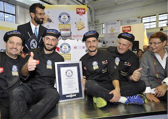 A decretare il raggiungimento del record è stato Lorenzo Veltri, giudice ufficiale del GWR, che ha valutato peso, gusto, grado di cottura e l’equilibrio degli ingredienti. Omologato il record, Ambrogio è stato ‘fatto a fette‘ e distribuito al pubblico presente al Cake Festival, per un assaggio di squisita bontà gluten-free.