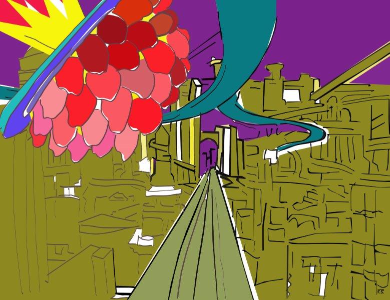 Fabrizio Sclavi, l’artigiano della carta stampata che vuole colorare il mondo, ha fatto un sogno: una notte, dentro la Pasticceria Cucchi, tutti i dolci, le torte, le creme e i cioccolati si animano. Cominciano a volare e a ballare allegramente. Scappano dal frigorifero, dalle vetrine e dai vassoi dove sono ben composti. Accendono i motori pronti al decollo. La Pasticceria lì all’angolo di Corso Genova, diventa un trampolino di lancio per missili e dischi volanti.