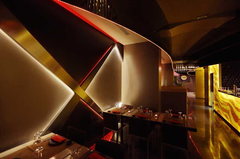 Questo nuovo "fusion restaurant" riassume e amplifica il messaggio di Kanji dove architettura, design e forme innovative si uniscono ai gusti dei piatti della tradizione giapponese con elaborazioni gastronomiche contemporanee di grande effettoespresse nella creatività della cucina fusion. Il nome di questo luogo è Kanji Light e due interpreti unici e vincenti si uniscono per la seconda volta (la prima esperienza è stata con Kanji Evo): Giuseppe Dondoni cura la disposizione degli spazi e interpreta con contenuti di contrasto l'idea di progetto che rende il luogo diverso e irripetibile, unico e affascinante, mentre Jie Lin, titolare e art director, inventa un luogo dove il gusto e i sapori della cucina giapponese si fondono in nuove percezioni tra passato e futuro in modo geniale e di grande qualità di prodotto e di presentazione. Il risultato è un luogo unico dove forme giganti e scenografie si alternano mentre gli avventori in un pranzo di lavoro o in una cena con amici trovano un appagamento totale.