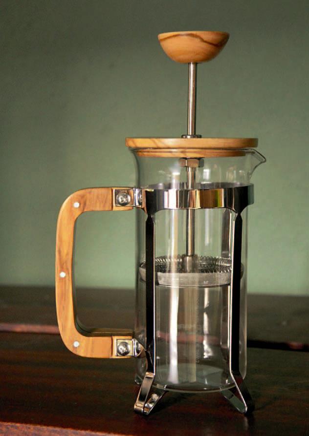 CURIOSITÀ E CONSIGLI Vi suggeriamo di acquistare una French Press in vetro resistente alle alte temperature, ad esempio in pyrex glass e con il manico, perché più pratica da manovrare. Accertatevi che sia facilmente “smontabile” per permettere una meticolosa pulizia delle sue parti interne, compreso il filtro che trattiene la polvere esausta. Se avete voglia di sperimentare nuove preparazioni, questo sistema di estrazione consente grande versatilità ad un costo davvero contenuto. Due esempi di utilizzo alternativo: provate ad usare acqua fredda (seguendo il metodo cold brew) per un’estrazione ideale nella stagione estiva, oppure ad aggiungere aromi e spezie per preparatati a base di caffè più sfiziosi.