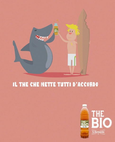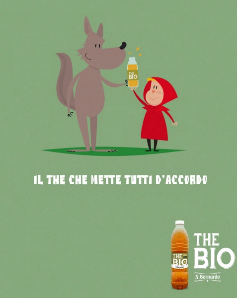 La campagna pubblicitaria per il lancio del The Bio S.Bernardo è stata firmata dalla brillante agenzia “Banale & Lamponi”. La strategia della campagna, condivisa con lo staff marketing del Gruppo Montecristo (che ha acquisito S.Bernardo da Nestlè esattamente un anno fa), parte da un insight molto semplice: Il biologico non è una cosa per pochi. Chi vuole bere bio, insomma, può trovare prodotti naturali dove va a fare la spesa, o si reca a bere il caffè, ogni giorno. Nel visual, il concetto si traduce nella rappresenta zione di personaggi con caratteri e comportamenti agli antipodi, destinati insomma, quantomeno a una difficile convivenza. Gli stessi antagonisti grazie a qualche sorso del The Bio S.Bernardo andranno invece d’amore e d’accordo. Ogni personaggio, da Cappuccetto Rosso con il Lupo Cattivo al Prode Cavaliere con il Drago, è stato creato dai grafici di “Banale & Lamponi” appositamente per il The Bio S.Bernardo. Il claim che chiude: “Il The che mette tutti d’accordo” riassume l’idea iniziale del messaggio. “Ci siamo divertiti a giocare sugli opposti. La campagna – spiega Antonio Biella, direttore generale di Acqua S.Bernardo – ribadisce, con forza e ironia, che le differenze si possono abbattere con qual cosa di buono e naturale come il nostro The Bio. Esiste insomma sempre un momento ideale per dissetarsi”.