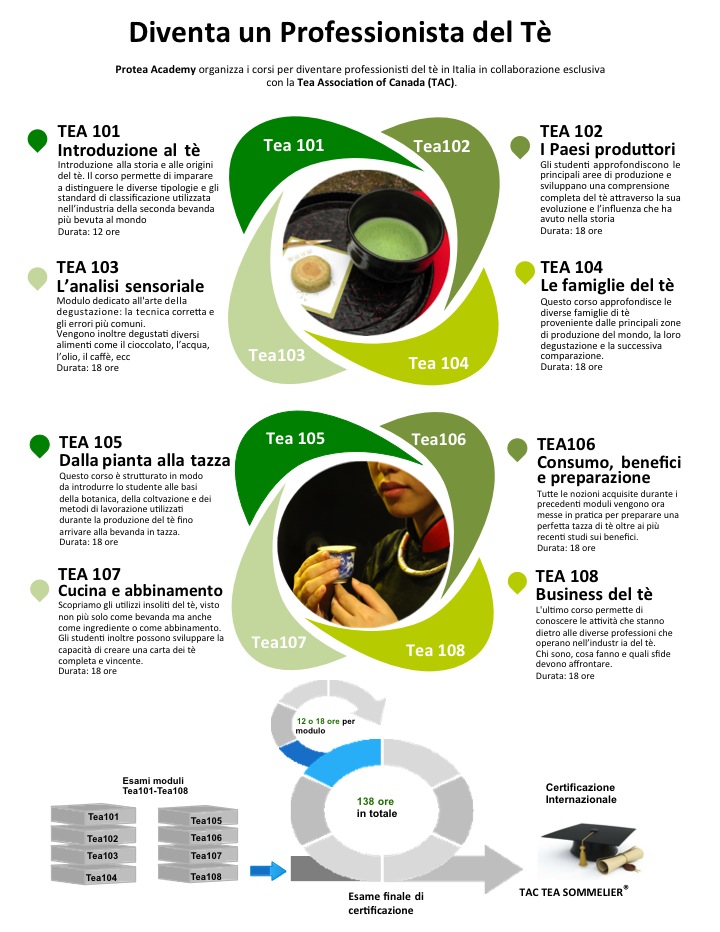 Dopo il successo della Tea Masters Cup, continua a soffiare aria di novità nel mondo del tè in Italia. Grazie all'accordo strategico con la Tea Association of Canada (TAC), l’Associazione Italiana Protea con la sua Academy introdurrà in Italia il programma di formazione TAC Tea Sommelier utilizzato da anni con successo nei college canadesi e on-line.