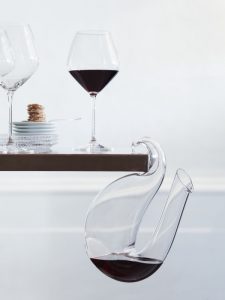 La vera innovazione, però, sta nel design del nuovo arrivato, studiato non solo per essere posato sulla tavola, ma anche per essere appeso! E questo è possibile grazie al preciso bilanciamento del decanter, frutto di una meticolosa produzione artigianale.