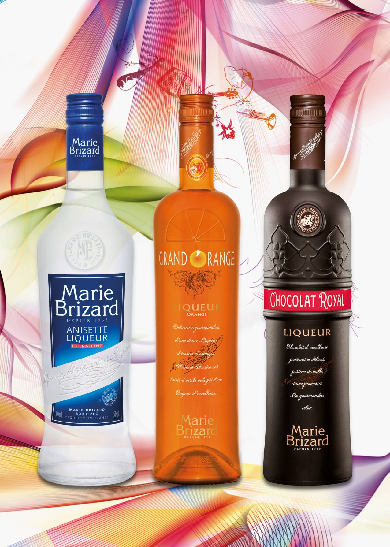 I liquori Marie Brizard sono freschi ed esotici, essendo basati su estratti e aromi vegetali naturali, lavorati secondo l’esperienza della Casa. Possono essere bevuti on the rocks o come base per freschissimi long drink. La loro ricca complessità aromatica consente ai barman di tutto il mondo di esaltare la propria creatività professionale ai massimi livelli. Blue Curaçao, Triple Sec, Banana, Menta, Cocco, Cassis e tanti altri fantastici gusti compongono la gamma inimitabile dei liquori Marie Brizard.