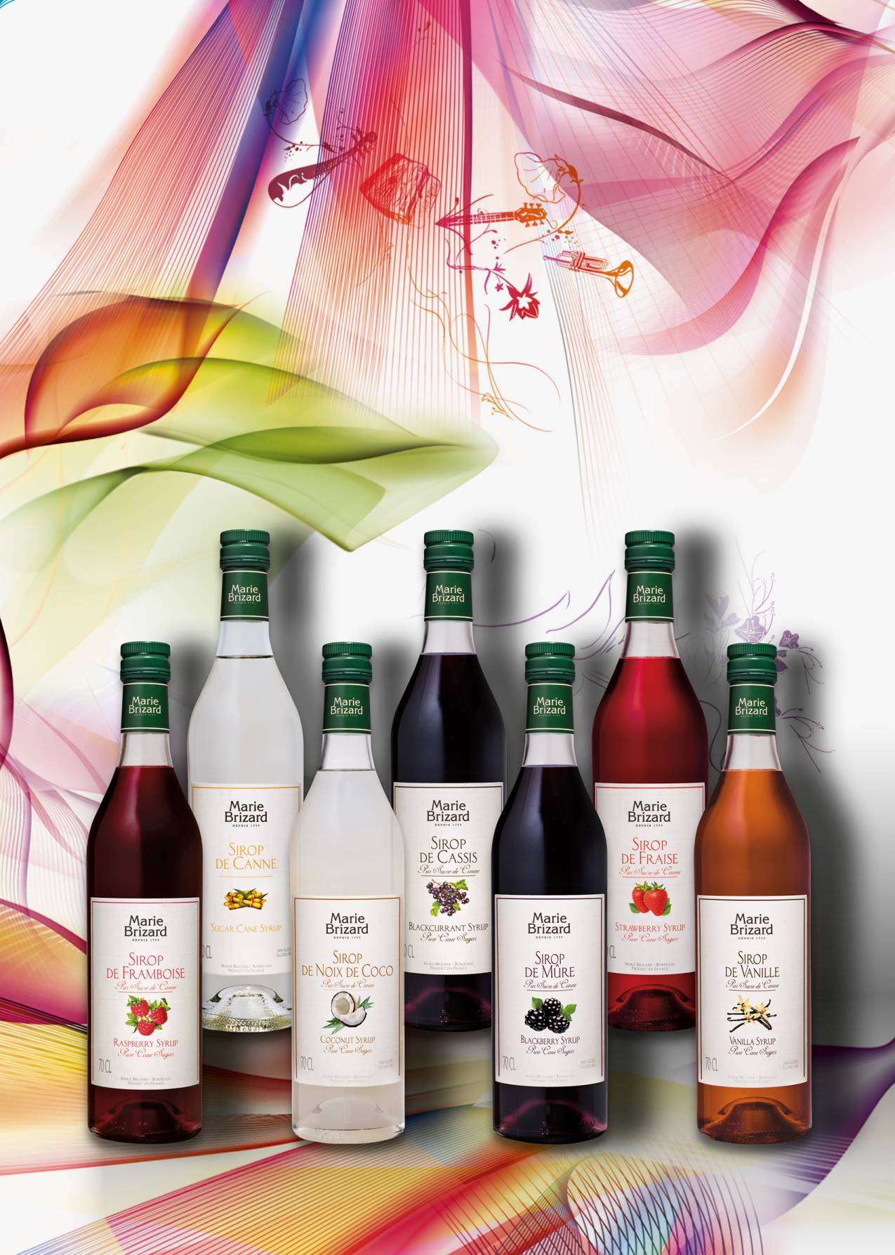 Anche nei suoi sciroppi Marie Brizard mette tutta l’esperienza e tutta la cura tradizionale che da oltre 250 anni dedica alla produzione dei suoi celebri liquori. Gli sciroppi Marie Brizard, ottenuti con l’uso esclusivo di zucchero di canna, hanno un contenuto elevatissimo di estratto naturale di frutta, e per questa ragione consentono di ottimizzare perfettamente le loro dosi nella miscelazione. Fragola, lampone, mora, cassis, vaniglia, cocco e tanti altri fantastici gusti compongono la gamma inimitabile degli sciroppi Marie Brizard.