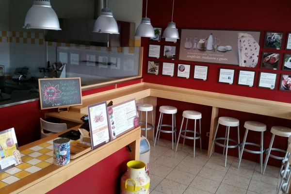 Il frontale rosso dell’area vendita richiama le cucine tradizionali di una volta e la vetrata a vista permette al cliente di seguire in diretta preparazione e farcitura della piadina. Grandi menuboard per una comunicazione chiara e immediata e l’utilizzo di pannellature in truciolare, materiale semplice, naturale edecologico su cui si inseriscono loghi e immagini La Piadineria. Tutto per rievocare quella sensazione di ambiente familiare e piacevole che solo un prodotto semplice e tradizionale come la piadina può trasmettere, senza tradire le sue origini più genuine.